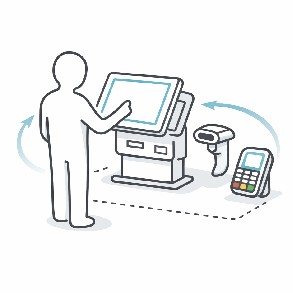 Удобное расположение экрана, сканера и других элементов для комфортного самообслуживания