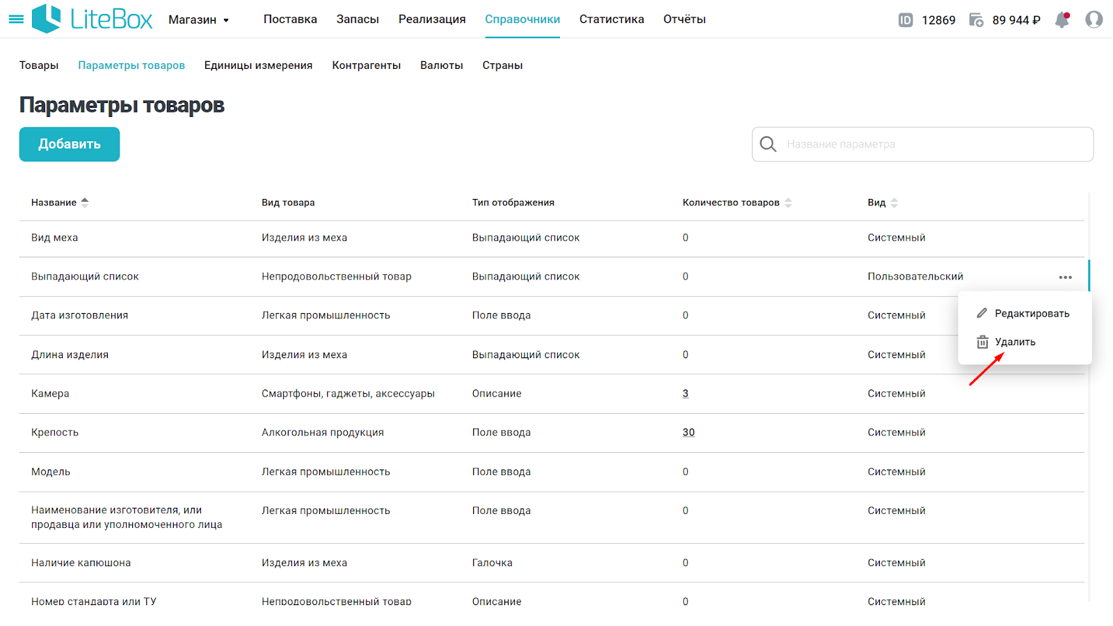 - Вид товара — вид товара, к которому применяется данный параметр;